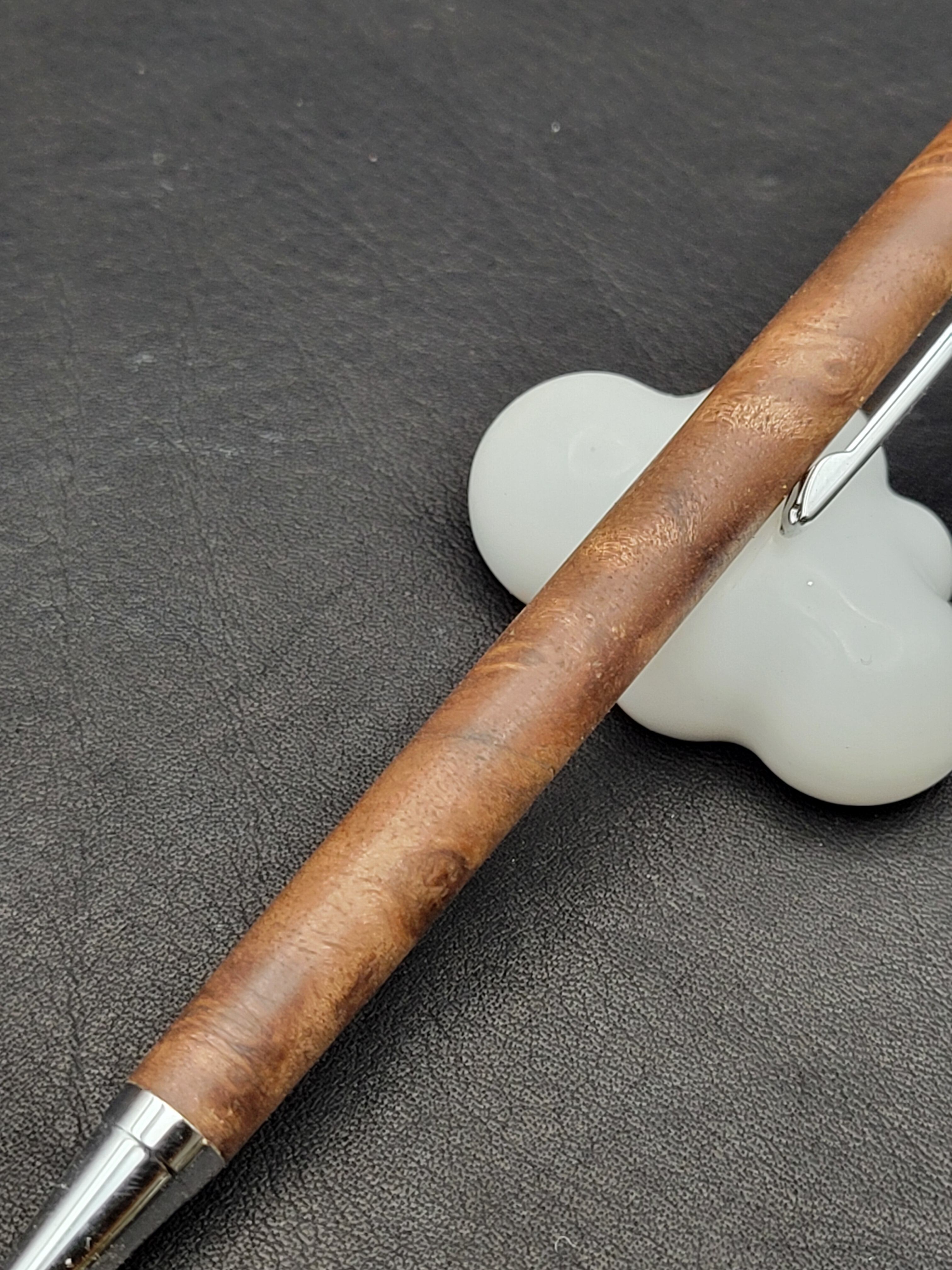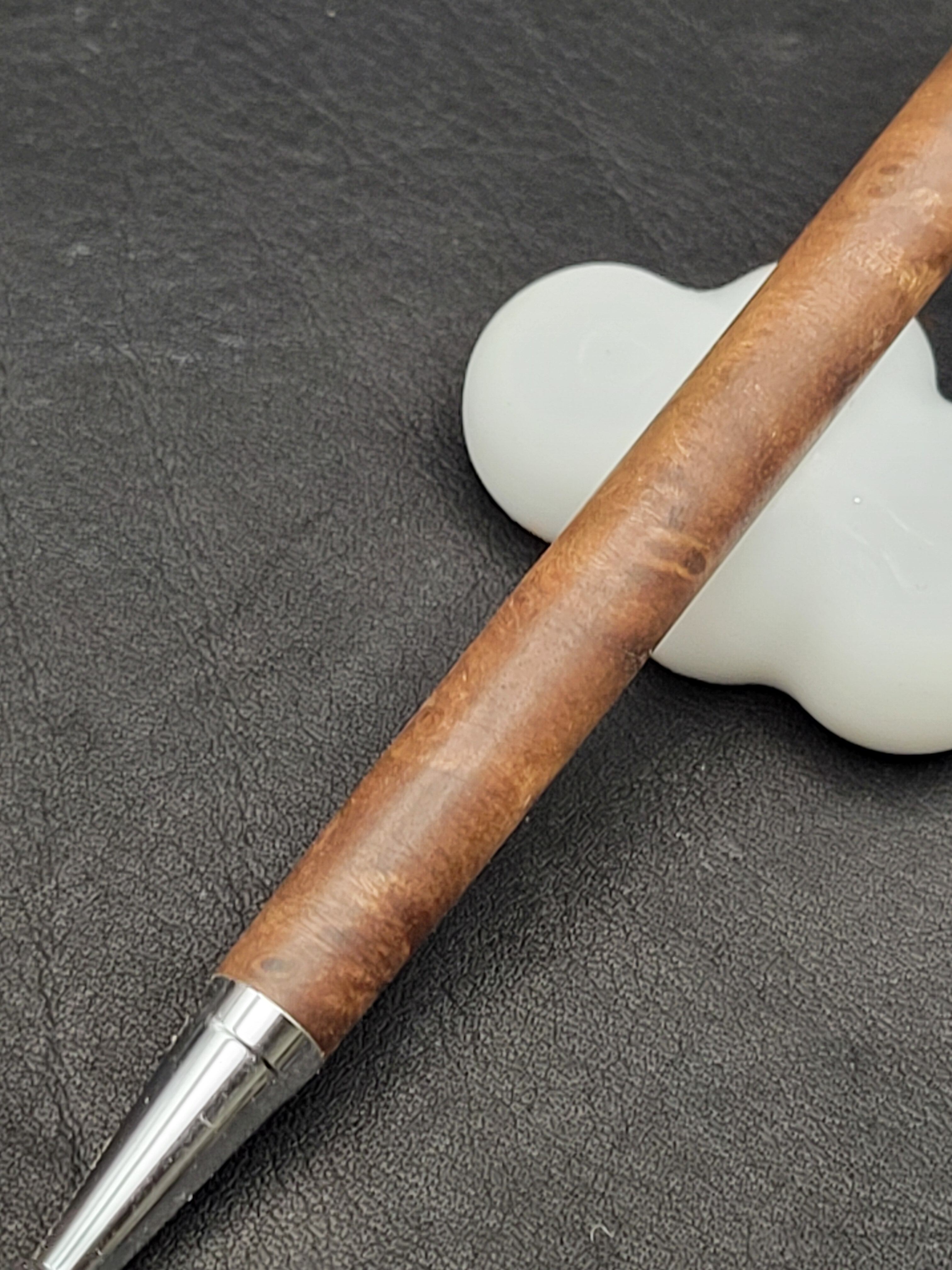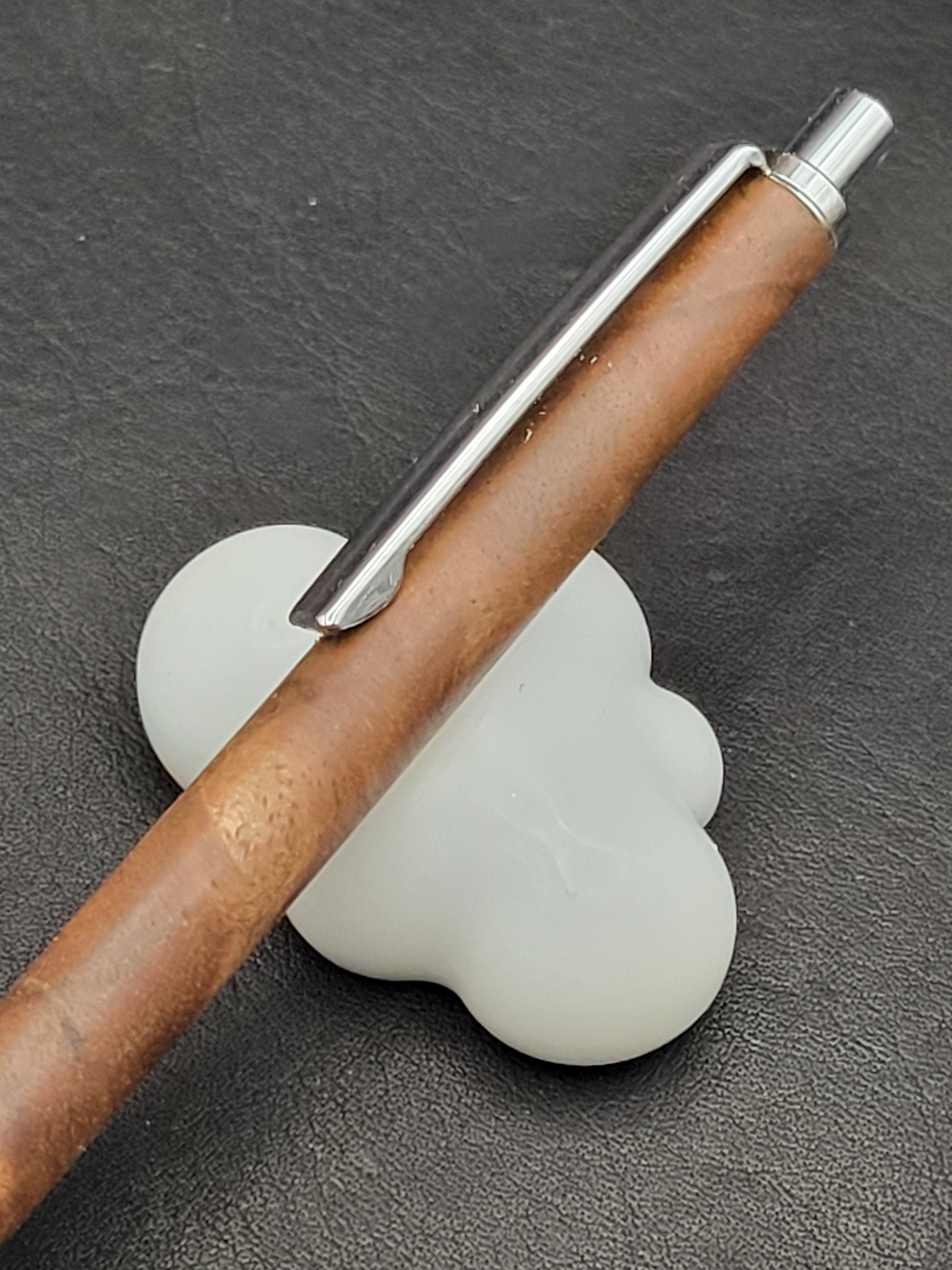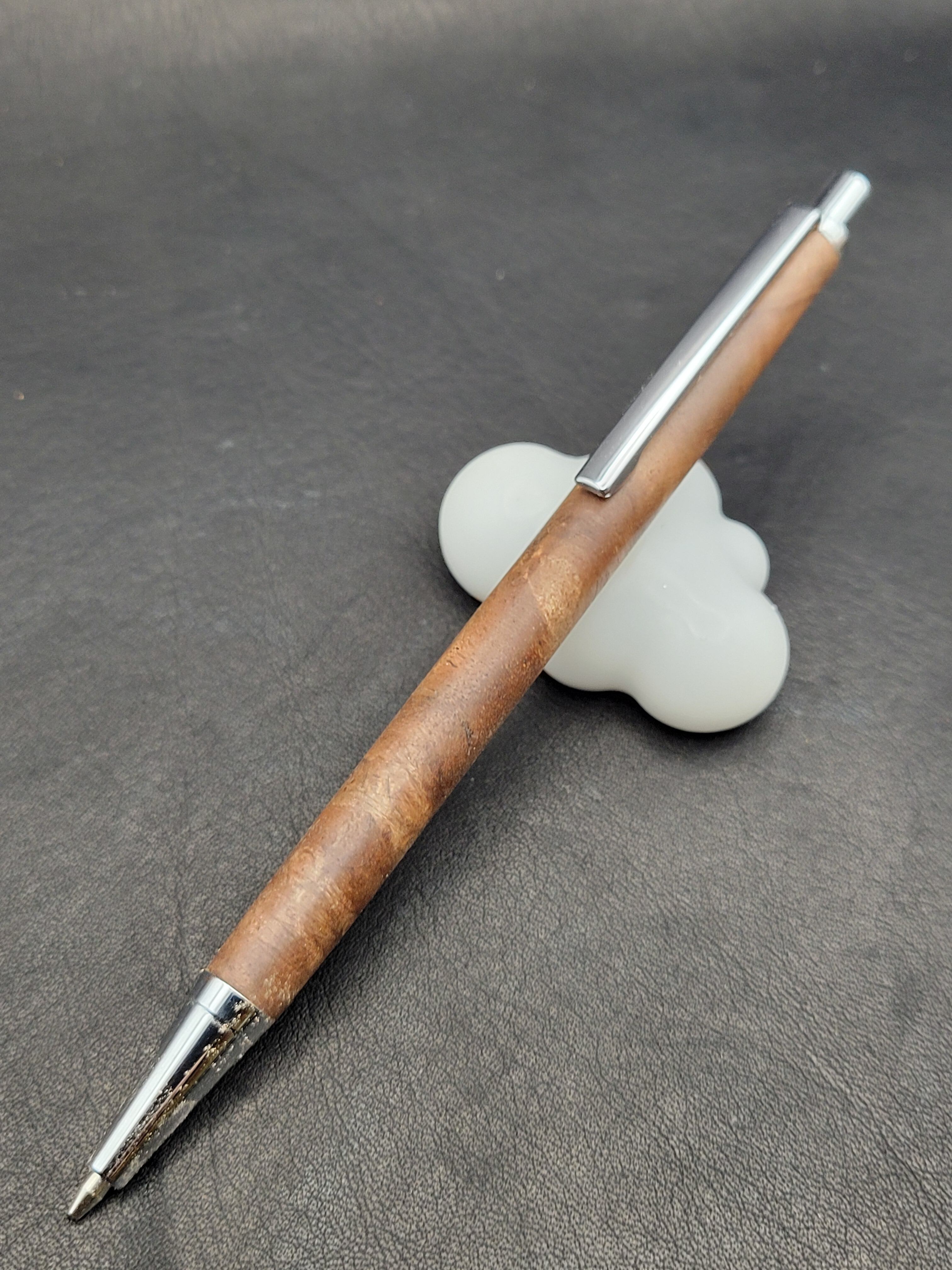 クラロウォールナット瘤は、その美しい杢目と深い色合いが特長の貴重な木材です。この細軸シャープペンは、持つ人に特別な使用感を提供するために、一つ一つ丁寧に作られています。シックなデザインは、ビジネスシーンでもプライベートシーンでも自信を持ってご使用いただけるアイテムです。
