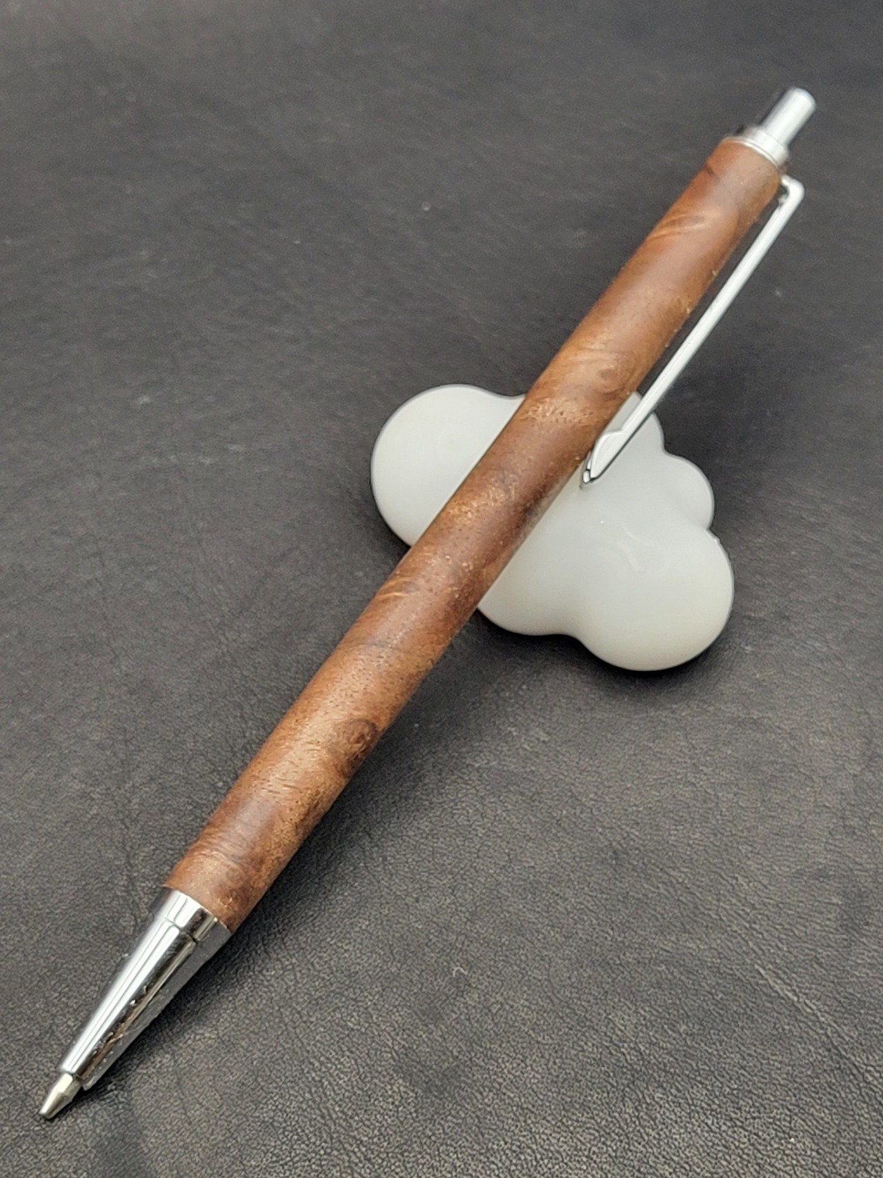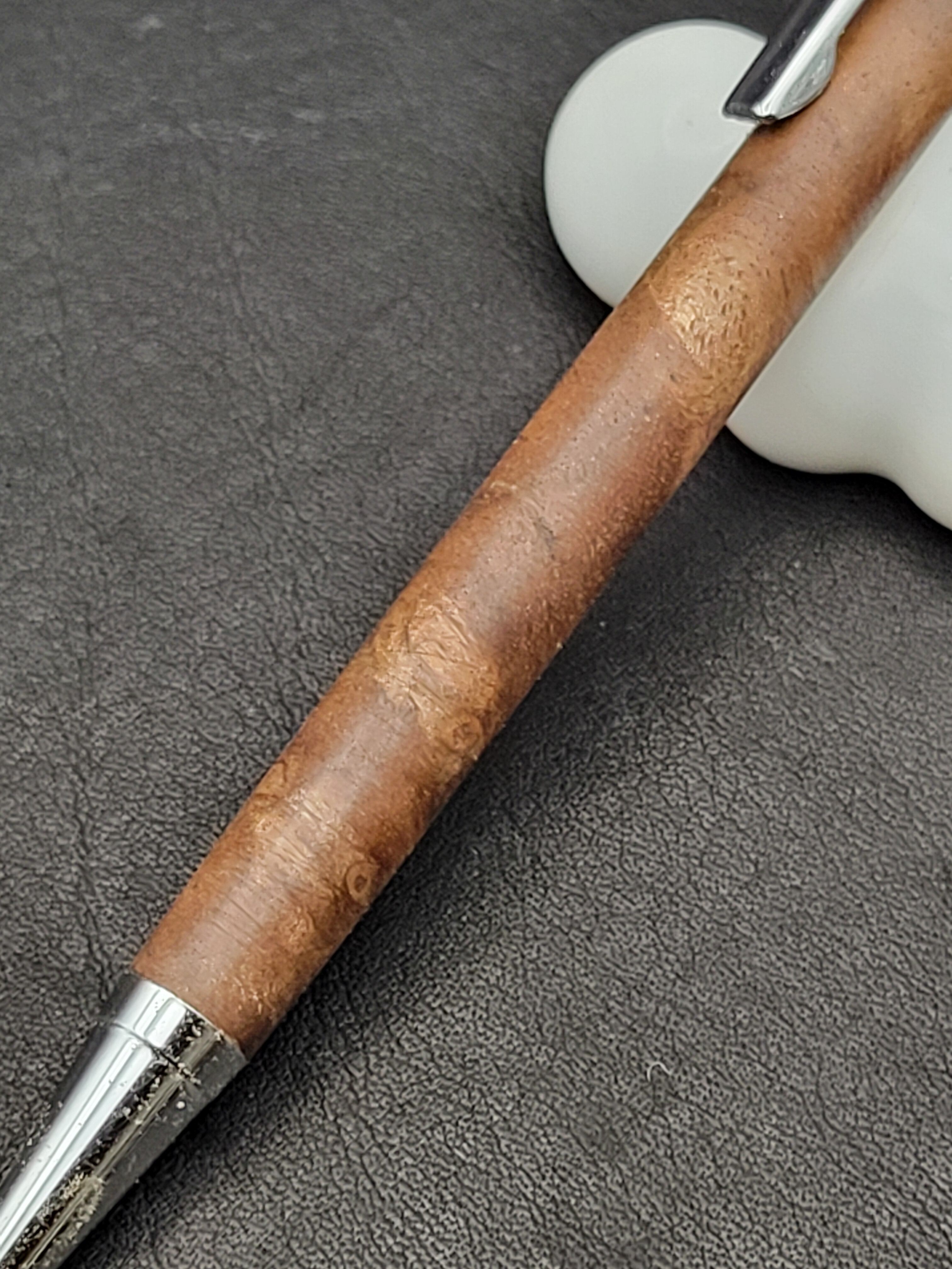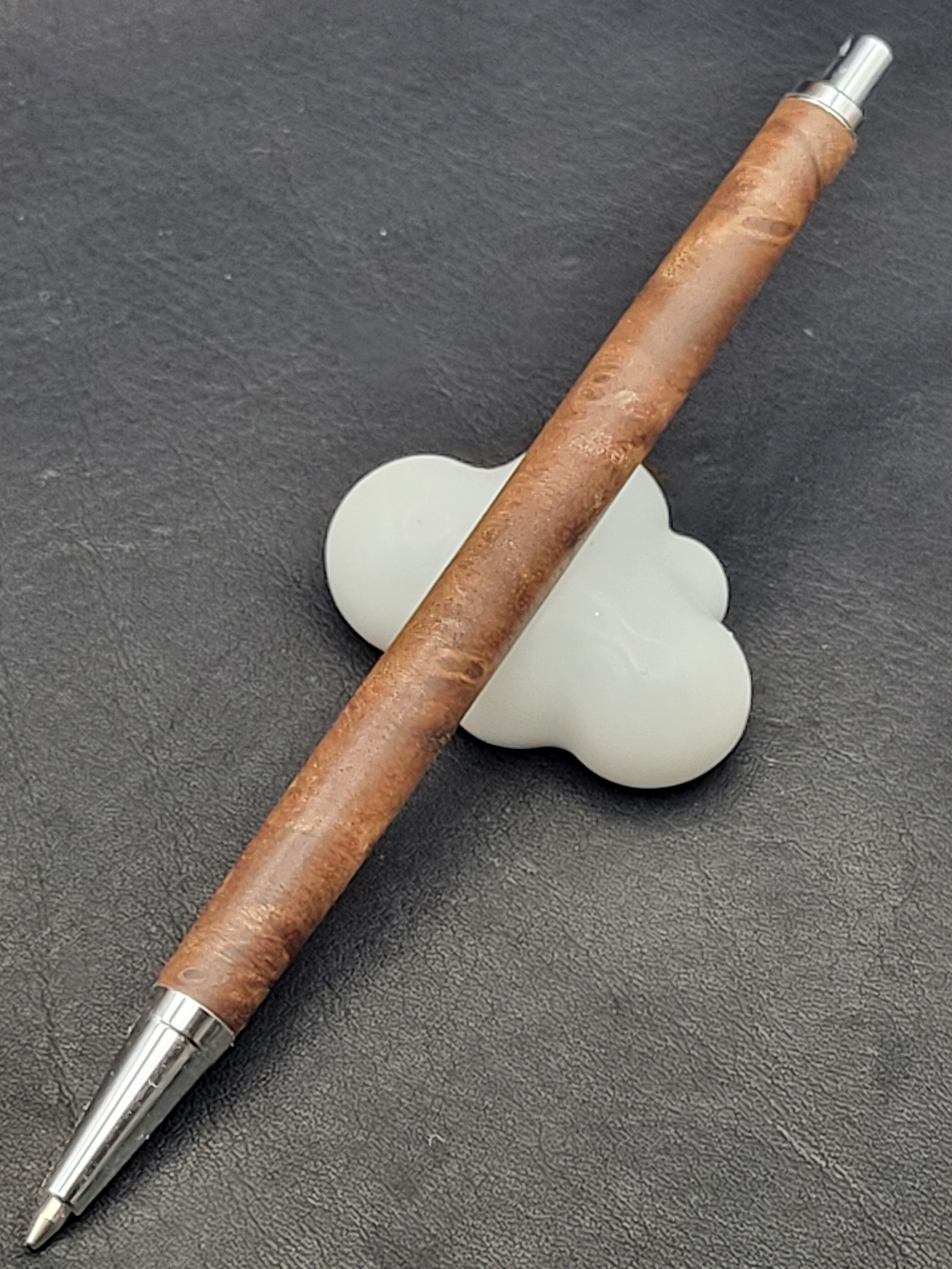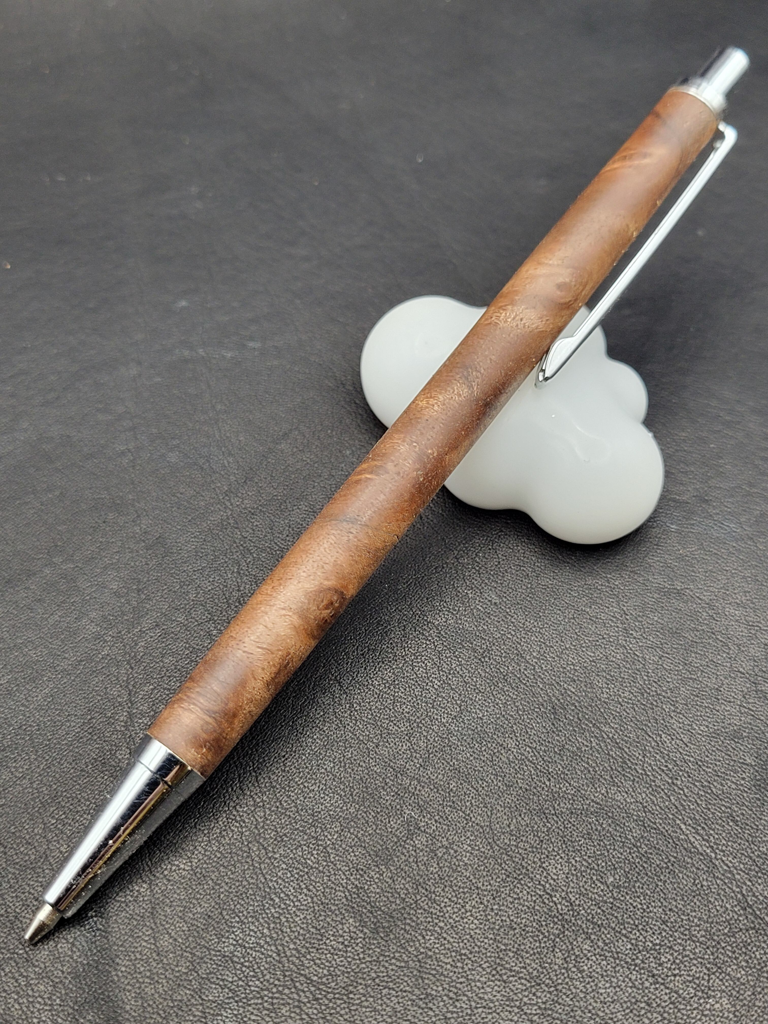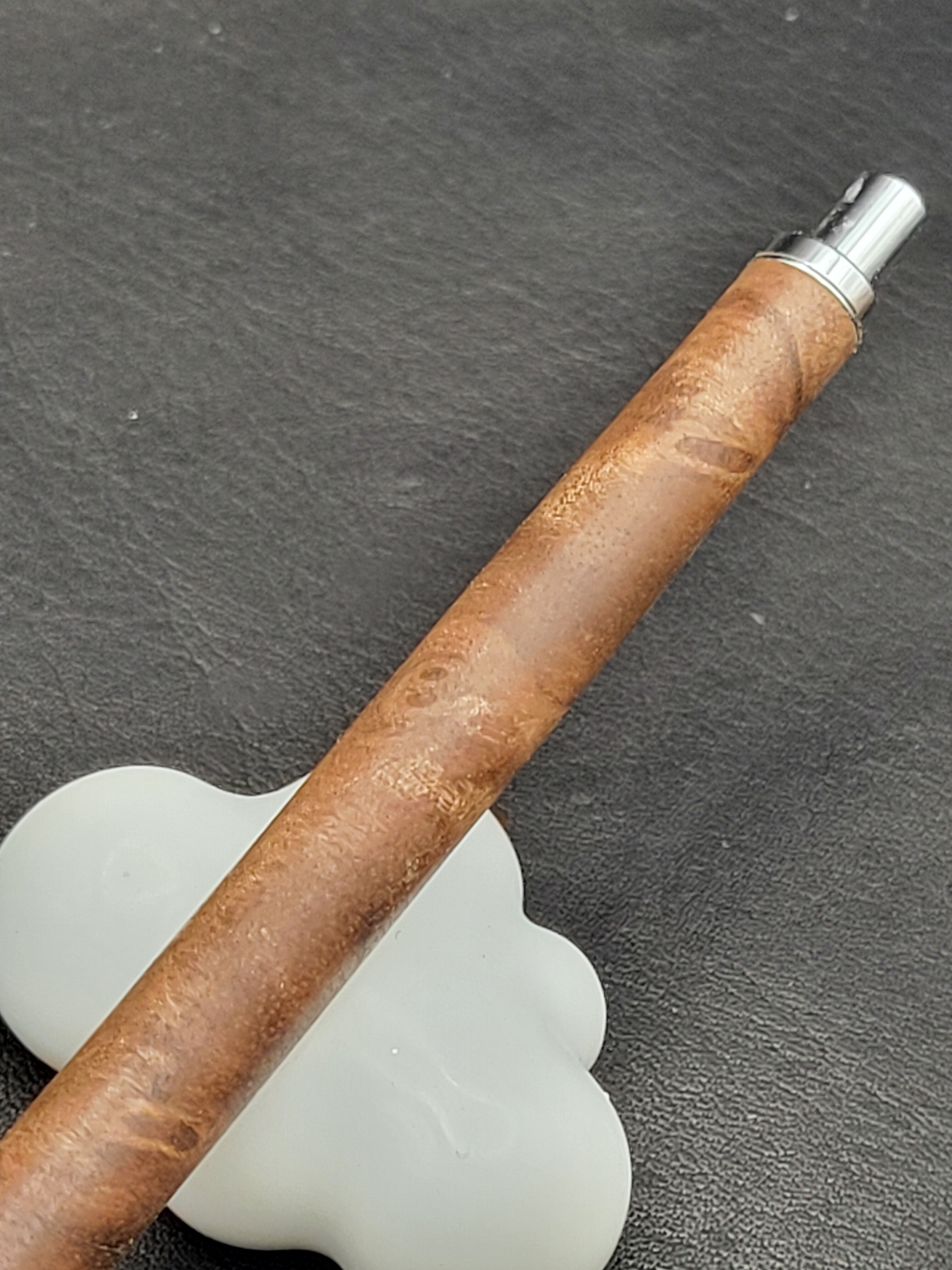 クラロウォールナット瘤は、その美しい杢目と深い色合いが特長の貴重な木材です。この細軸シャープペンは、持つ人に特別な使用感を提供するために、一つ一つ丁寧に作られています。シックなデザインは、ビジネスシーンでもプライベートシーンでも自信を持ってご使用いただけるアイテムです。