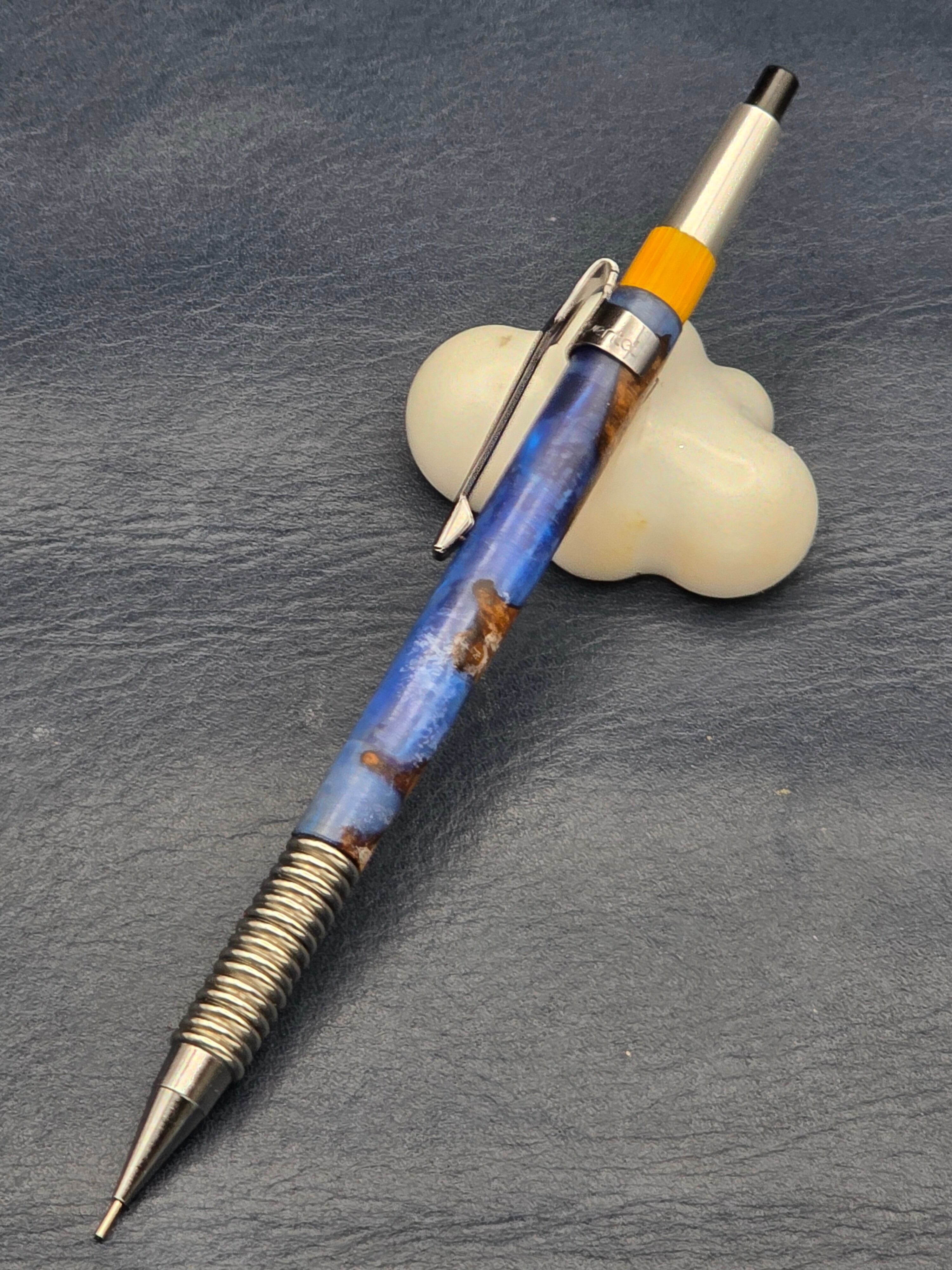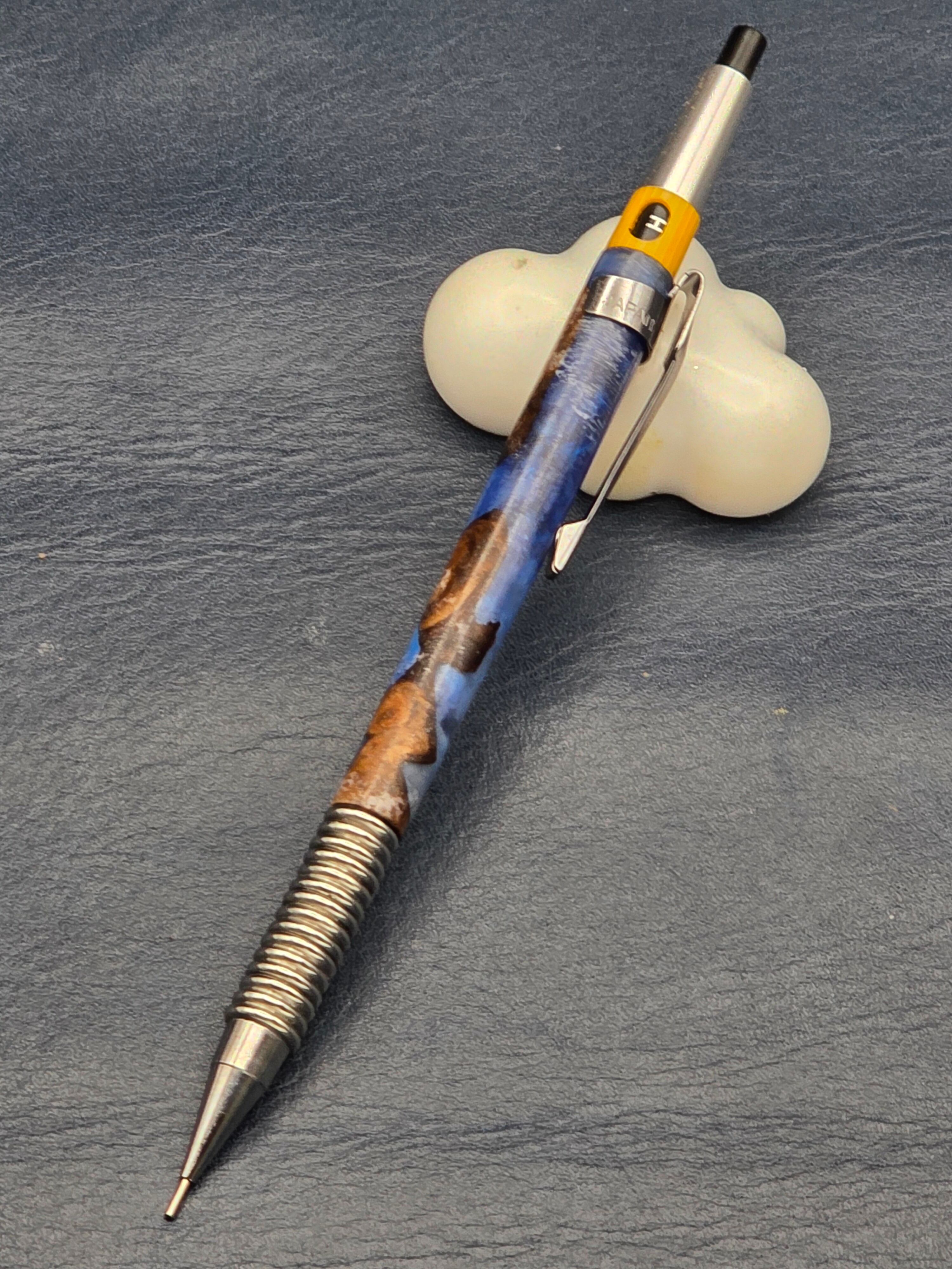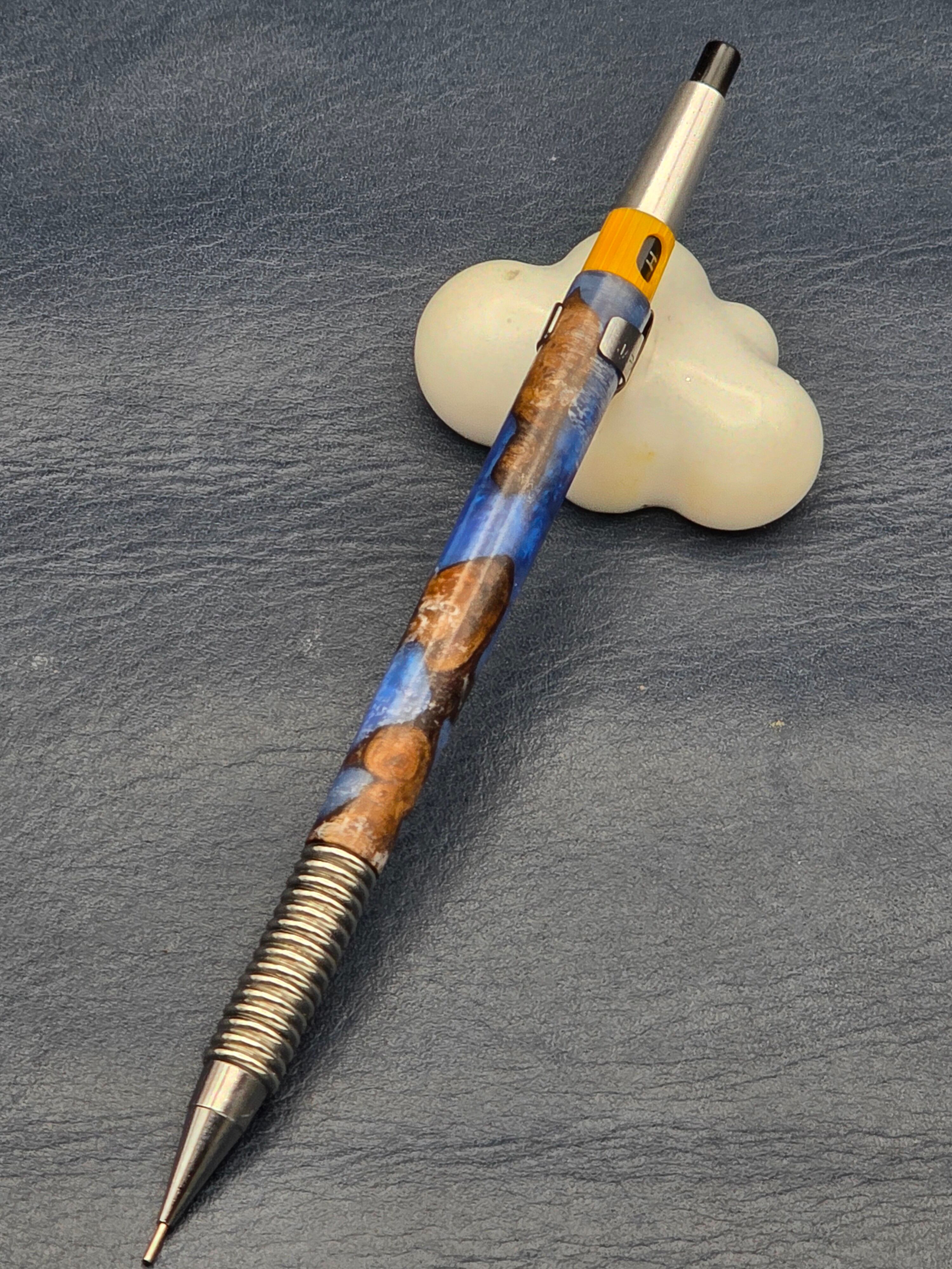 【ステンレスグリップ+レジン+花梨瘤カスタムシャープペン】