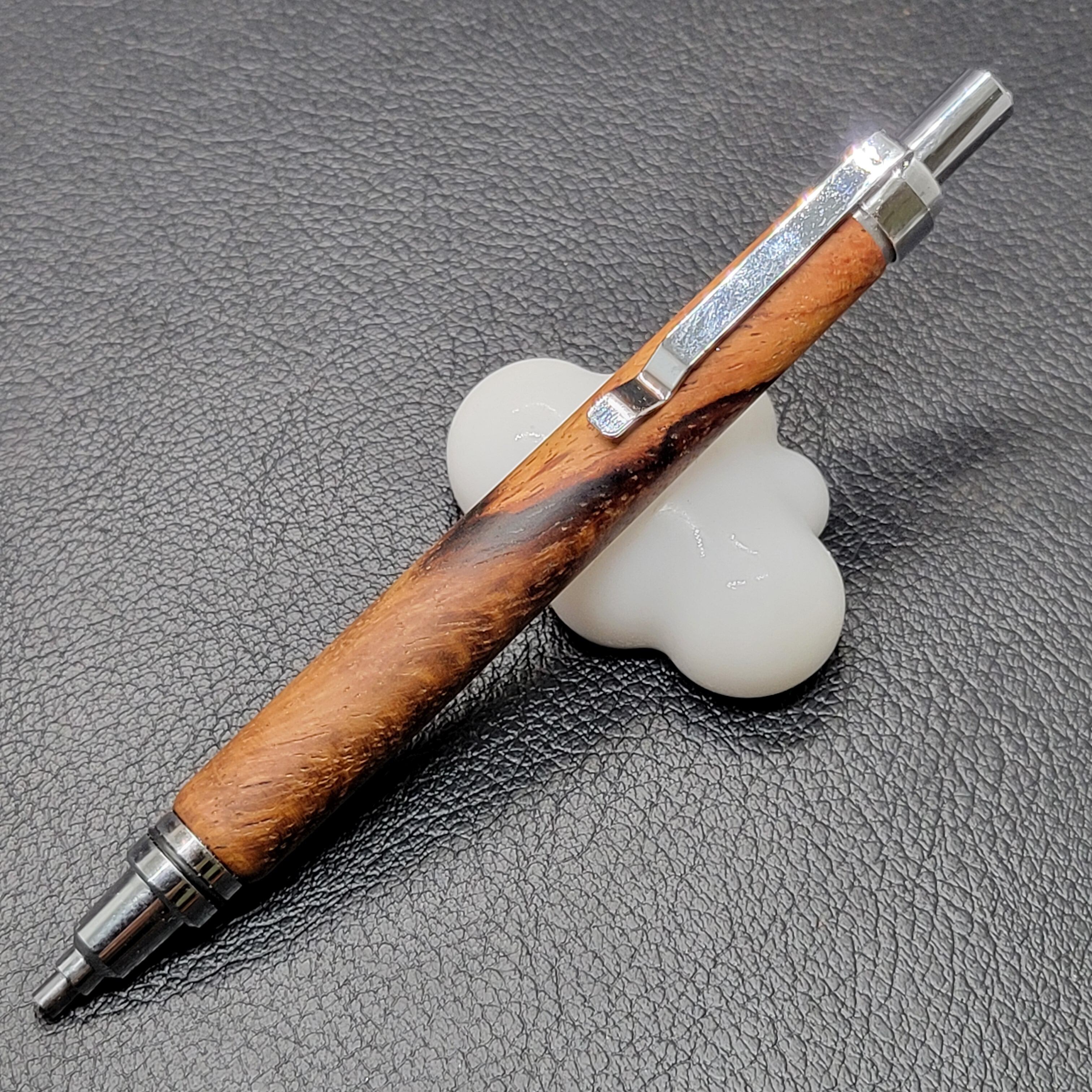 樟を使用し、エレガントなデザインで仕上げたカスタムノック式のステック消しゴムです。ナチュラルな木の質感と美しい木目が楽しめ、手に取るたびにその魅力を感じていただけます。