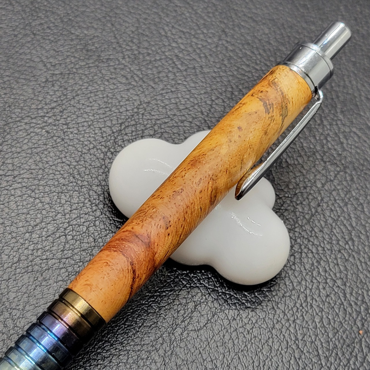 チタン焼き入れ低重心グリップ+花梨瘤紅白ボールペン