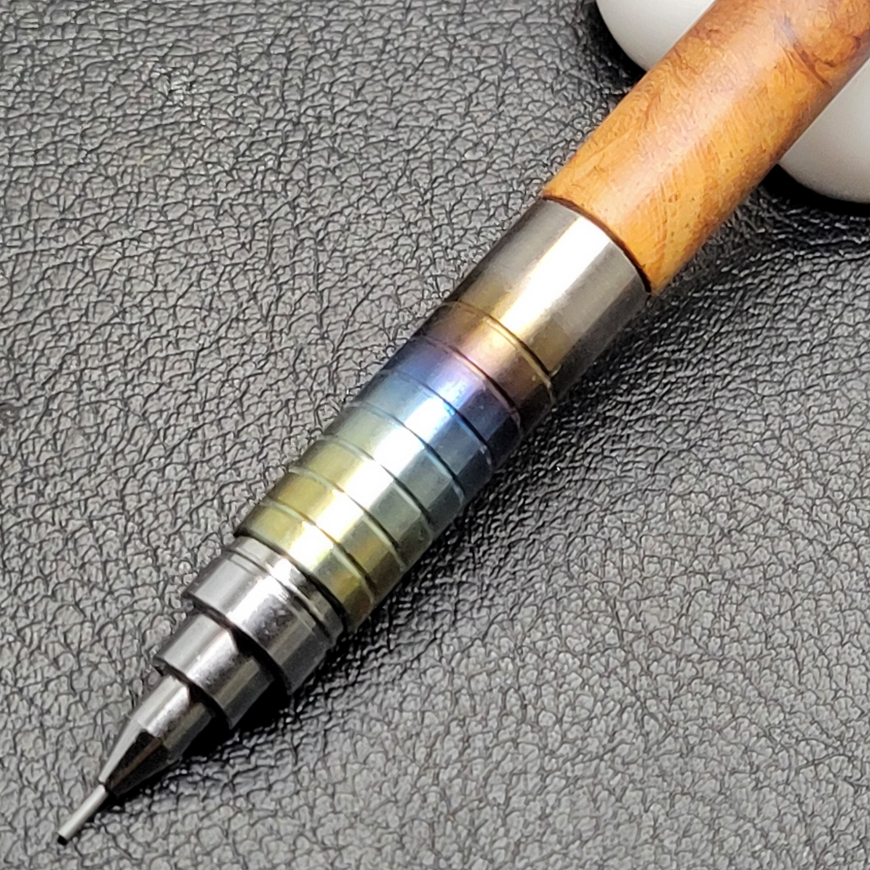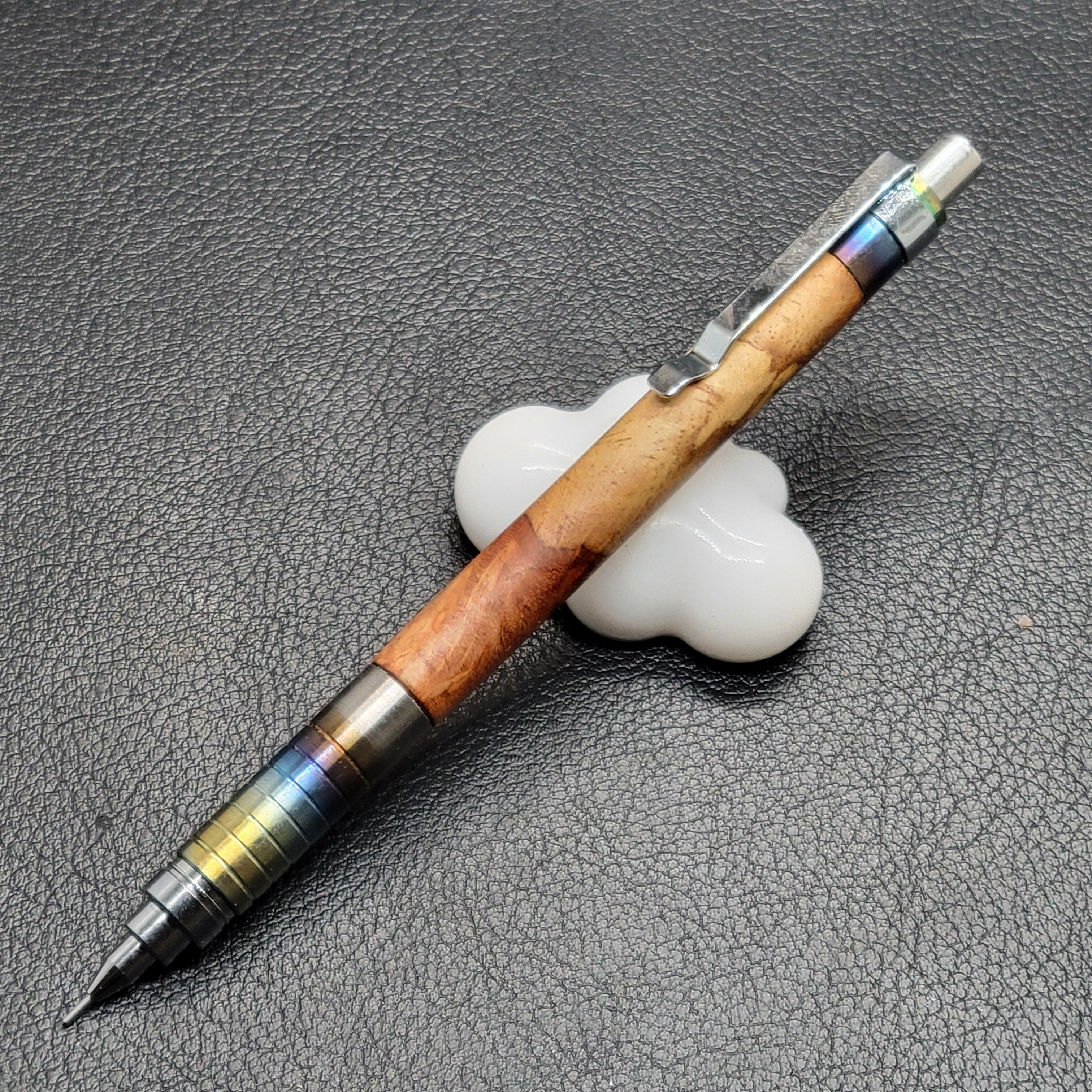 花梨瘤紅白スポルテッド+チタン焼き入れカスタムシャープペン